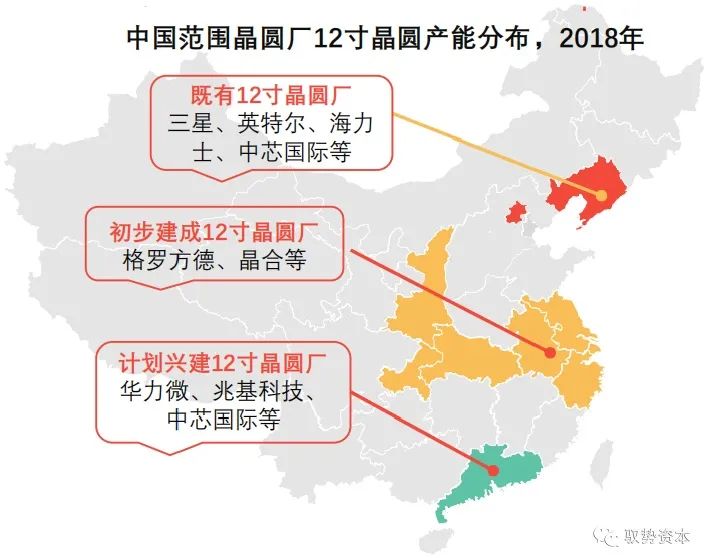 当前中国主流晶圆厂约30家,在规格上分别涵盖8英寸晶圆、12英寸晶圆。其中,8英寸晶圆厂相对12英寸晶圆厂数量较多。中国本土12英寸晶圆厂以武汉新芯、中芯国际、紫光等为例,平均月产能约65千片。在中国设立晶圆厂的境外厂商包括Intel、海力士等。中国晶圆厂发展速度较快,如武汉新芯12寸晶圆以平均月产能200千片超过海力士平均月产能160千片。