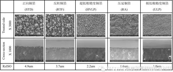 表1、不同类型铜箔粗糙度微观形貌一览表