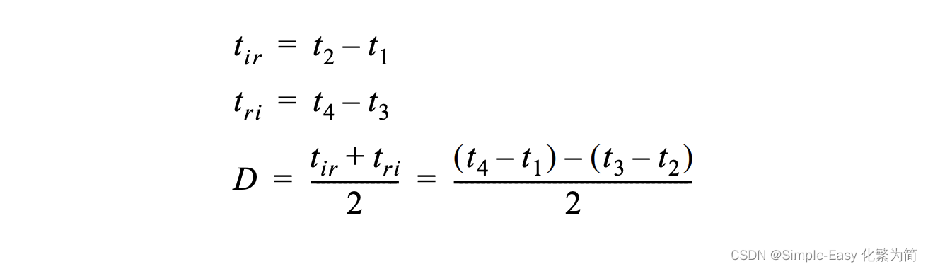 D是计算的平均路径时延;假设两个方向的时延相等;