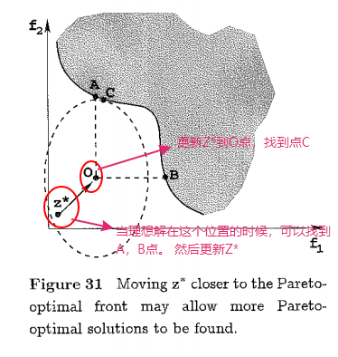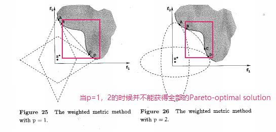 任然还是和上面的一致,通过使用选择不同的p。结合不断的在找到新的Pareto-optimal 点的使用,更新Z*,理想解的 位置