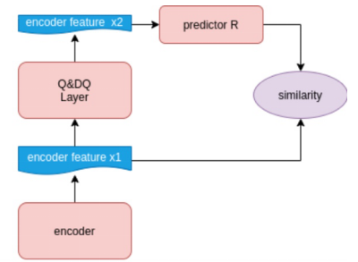 上图同对比了误差恢复模块和自监督算法中的SimSiam[2]结构对比图。如果我们把量化误差看座位一种数据增强,那么量化误差修复这一块刚好可以看作一种自监督学习网络,同时存在一条支路在反向传播过程中能够计算出准确的梯度,让我们能够获得更好的encoder层。