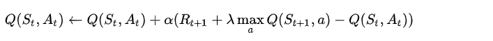 现在的Q值=原来的Q值+学习率*(立即回报+Lambda*后继状态的最大Q值-原来的Q值)