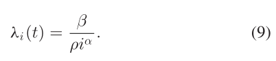 假设在服务器中,同时存在 I 个内容数据,其标号为 i (表示第i个最流行的内容),对于i号内容在时点t的平均请求速率为: