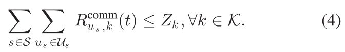 BS k 相关联的车辆的总速率受限于BS回程链路的容量,公式化为: