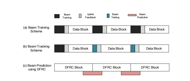 ③通信过程中,需要建立可靠的通信链路来保护QoS。传统方法是通过通信协议,利用信令与导频的频繁反馈来完成波束的训练与跟踪,但是难以满足高移动性的V2X网络。利用雷达传感辅助通信的DFRC方法相较于传统方法,时延更低,频谱利用率更高,是推进V2X网络的关键技术。
