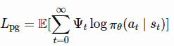 其中Ψt的候选值包括轨迹返回Gt、Q值Q(st,at)或优势值A(st,at)。对应的策略梯度的替代损失函数可以逆向工程: