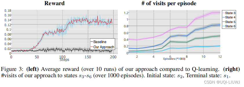 比较了论文的方法(由于这边只有六个状态,所以没有用DQN,直接Q-table)和Q-learning。