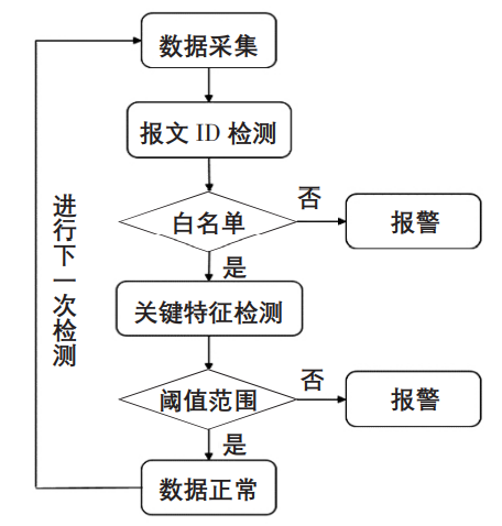 防火墙访问控制功能的实现主要基于建立汽车通信报文的白名单数据库,一旦检测到报文请求,将报文 ID 与白名单数据库进行比对,匹配成功则通过,失败则丢弃。