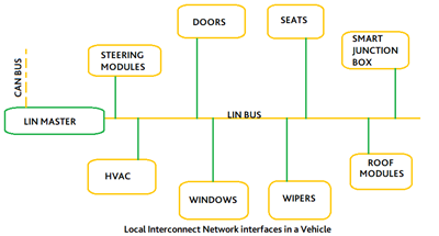 LIN 仅使用一根线(单线总线), 在这样一个网络上,可以容纳 16 个节点。16 个节点中的一个充当“主节点”,其他节点自动充当“从节点”;与纯粹主-主设置的 CAN 不同,LIN 是典型的主-从配置,其中一个节点传递指令或命令,另一个跟随。这里可以有1到15个从属设备,主设备同时包含一个主任务和一个从属任务。主机和从机通常是微控制器。车辆内部的通信网络是 CAN 和 LIN 总线的协作, LIN 总线用于车身电子,CAN 用于主流动力总成和车身通信。在 LIN 中,各子系统可以通过使用 CAN 总线的骨干网络连接。