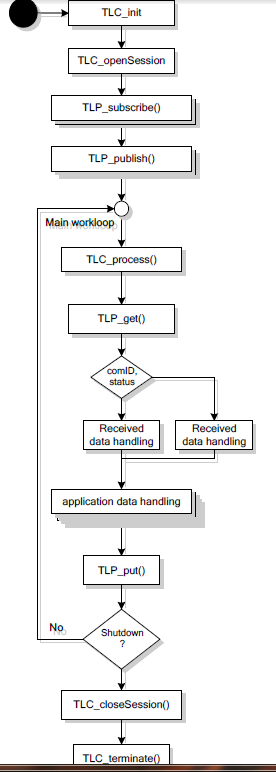 start->tlc_init->tlc_openSession->tlp_subscribe/tlp_publish->while(tlc_process)->end.