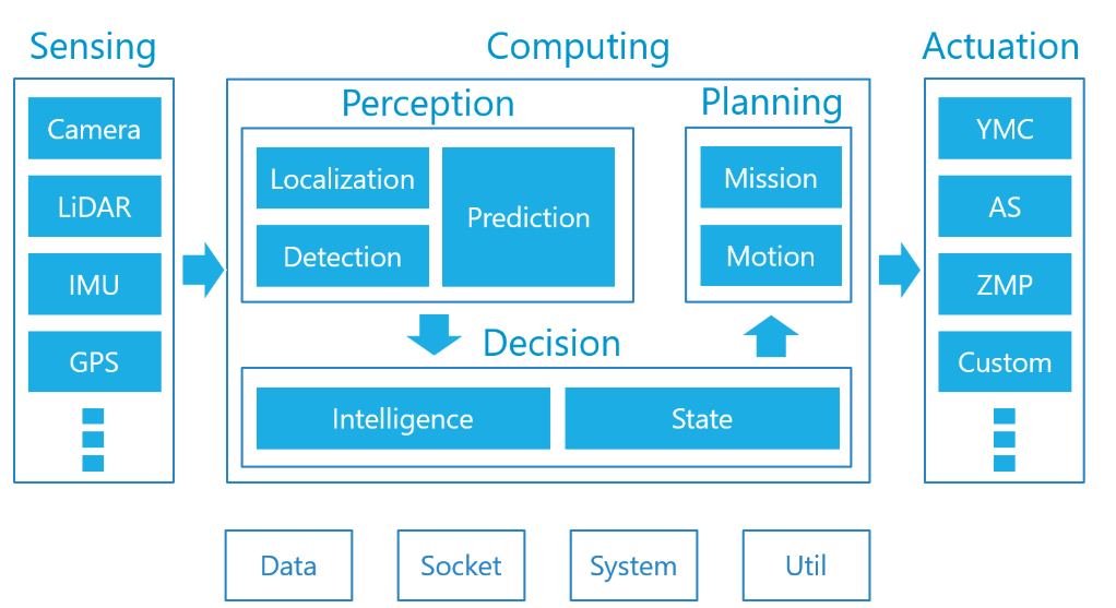 路径规划、路径跟随、加速/制动/转向控制、数据记录、汽车/行人/物体检测、3D本地化、3D映射