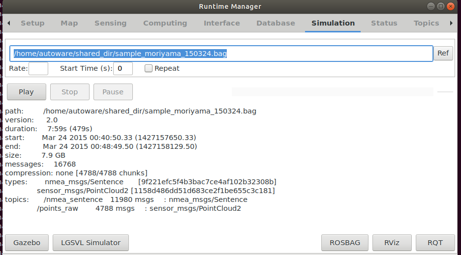 - 最后需要一辆具有Autoware的汽车;考虑到大家可能没有,可以使用ROSBAG和模拟器实现????