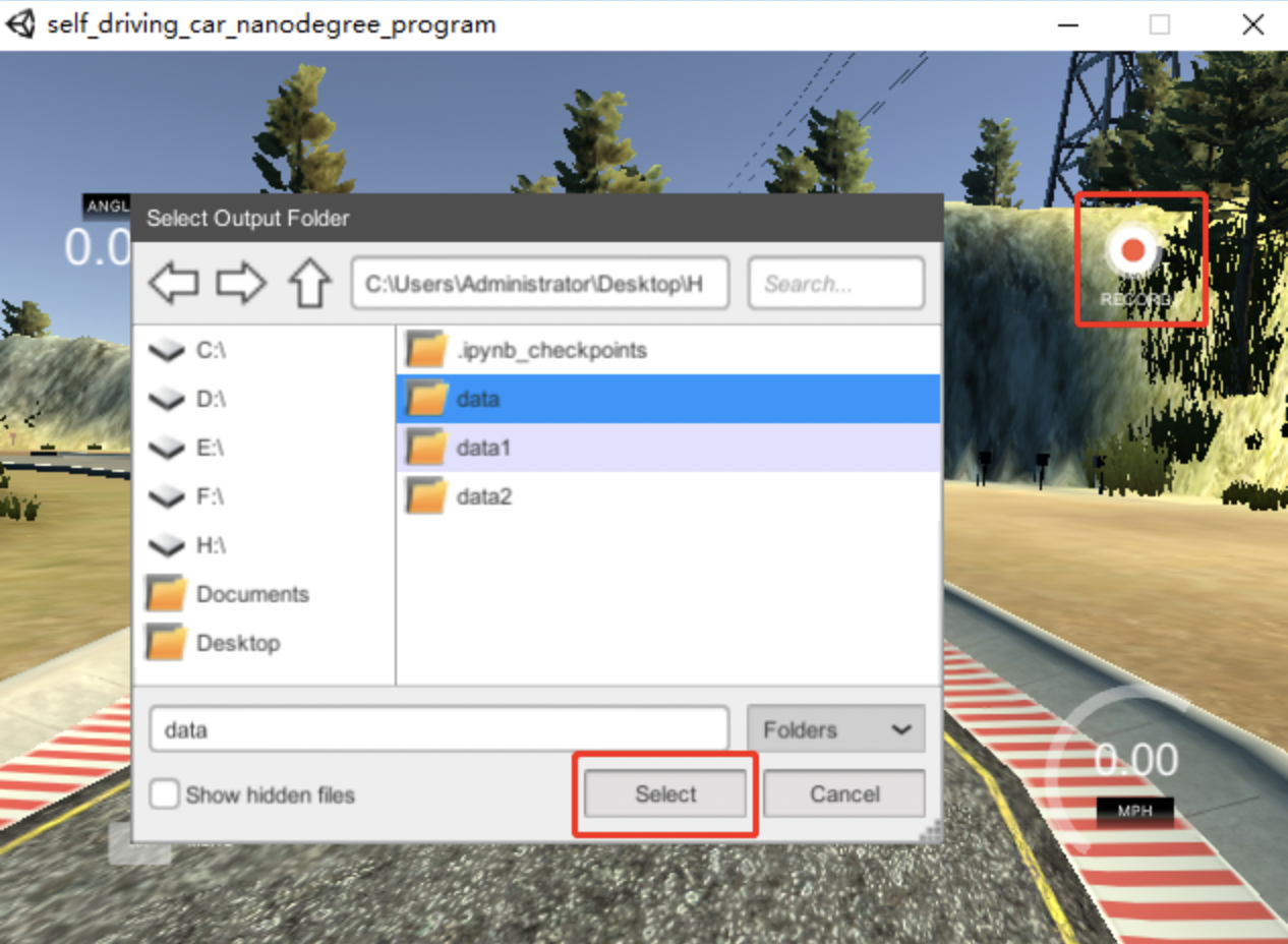 进入TRAINING MODE后点击右上角的RECORD选择训练数据保存的位置(注意保存位置要点选到文件夹上,不要选到文件夹内空白处),然后Select,如下图: