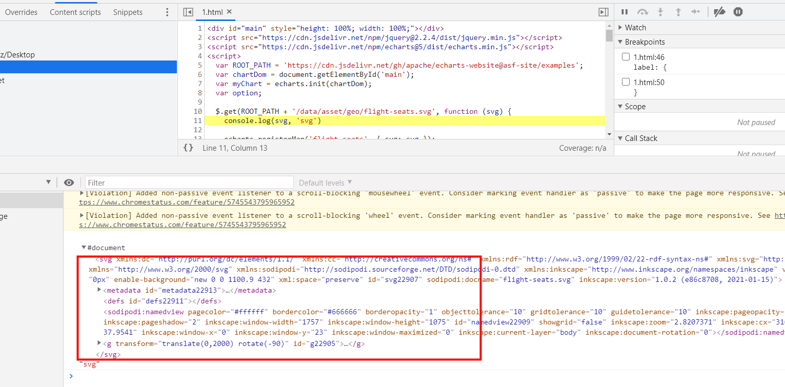 使用jquery获取的svg,是svg文件的编码。我们可以调试,打印一下svg的内容看一下。