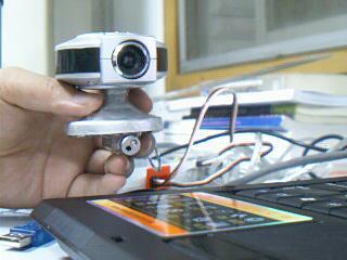 最近一直忙着找工作,blog都长草了,今天把以前作的一个东西放上来充充门面吧。记得在哪看到过老外做的这个东西,觉得很好玩,就自己也做了一个。在摄像头下面固定一个激光笔,就构成了这个简易的测距装置。看一下图吧。