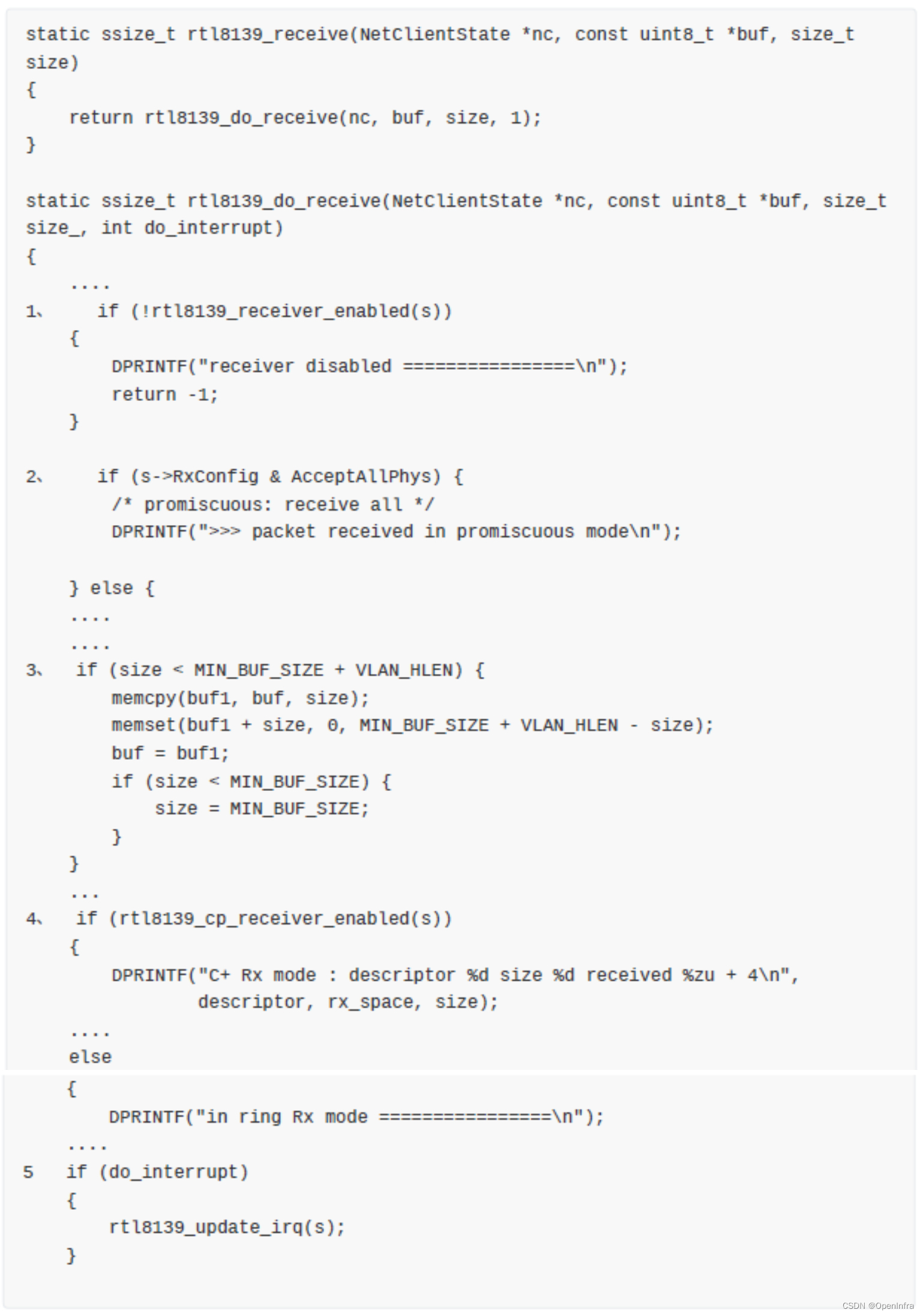 本文章选择rtl8139为例,介绍rtl8139如何处理buf。qemu从tap读取数据包后,会调用rtl8139_receive函数去处理数据包,如下: