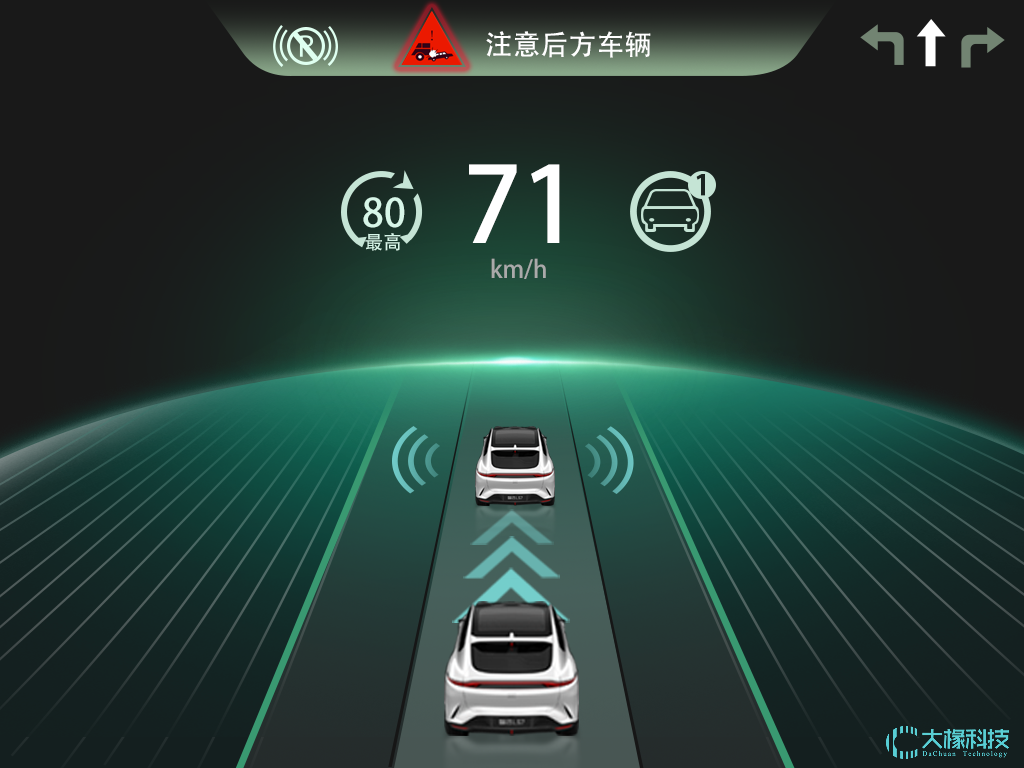 结论得出在前向碰撞预警算法触发时,算法将会对前车和后车进行同时预警,算法将会对前车提示预警“注意后方车辆”,算法同时对后方车辆提示预警“注意前方车辆慢速行驶”,当实际情况不满足算法触发条件后,前车、后车的预警消息将会同时消失。