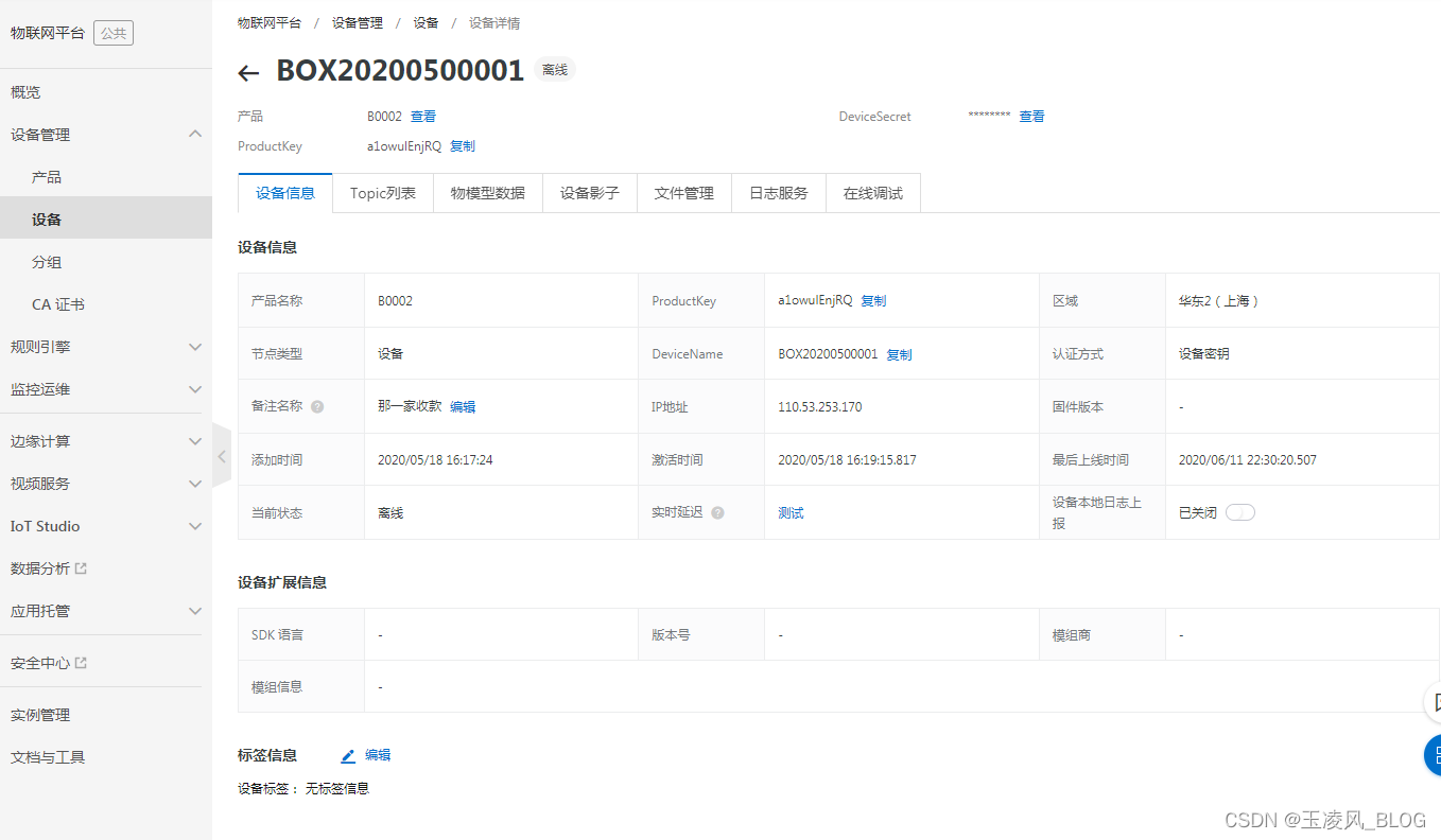 四、创建好设备之后,点击设备列表右侧的“查看”可进入如下界面。