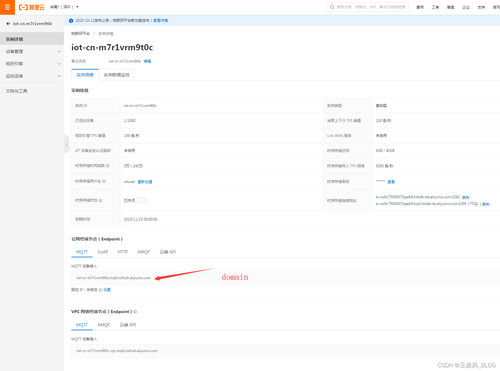 如果是企业版实例,还需要 mqtt 服务器域名,如下图所示: