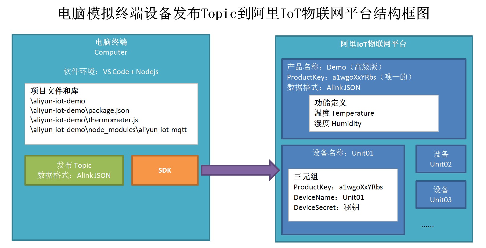 本教程用nodejs程序来模拟设备,建立连接,上报数据。无实际硬件。