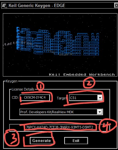 2.4 第一步把刚才复制的CID黏贴到这张图片中的CID位置;第二步在Target中选择C51;第三步鼠标单击Generate;第四步把生成的码复制