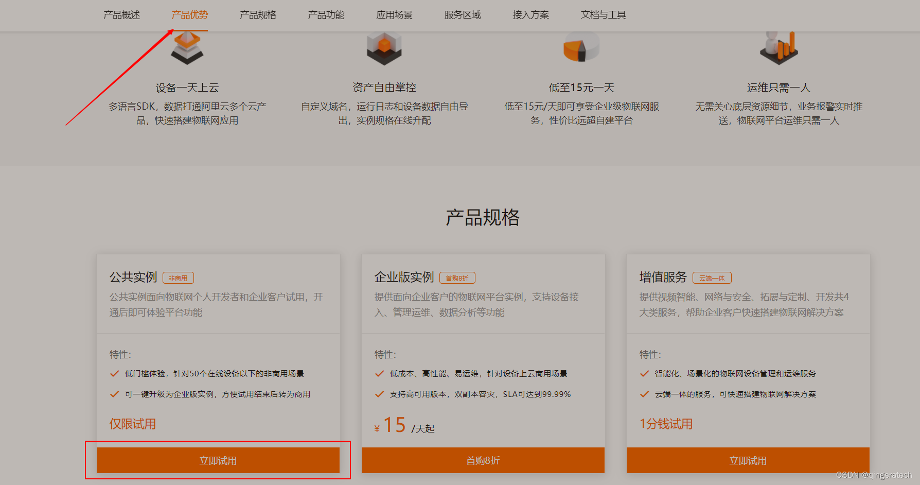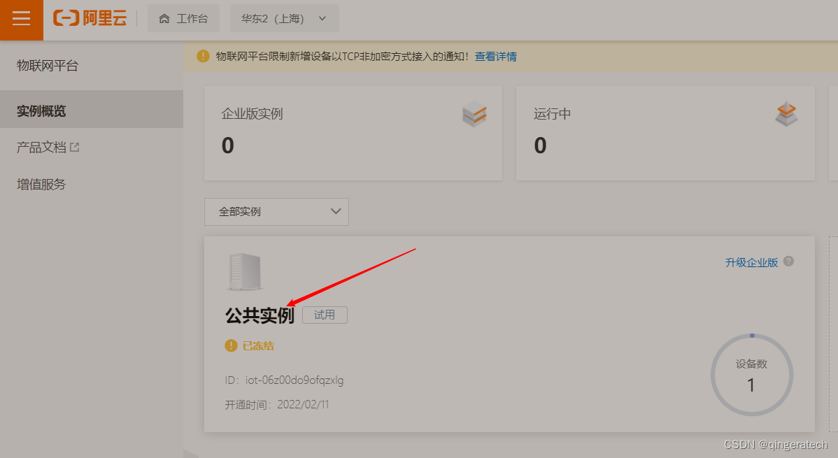 1)在阿里云中选择物联网平台