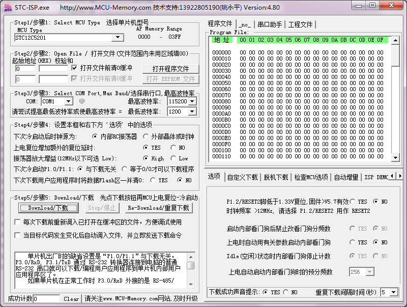 STC_ISP_V480为烧写软件,打开之后,找到单片机对应的COM口,点打开程序,冷启动即可(先点下载,再给单片机上电)。