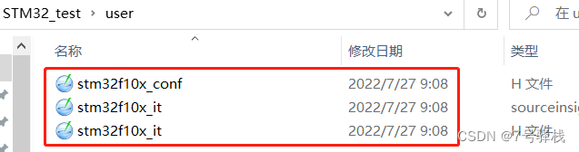conf 文件(configuration)是用来配置库函数头文件的包含关系的,同时里面还有一个用来参数检查的函数定义。两个it 文件是用来存放中断函数的
