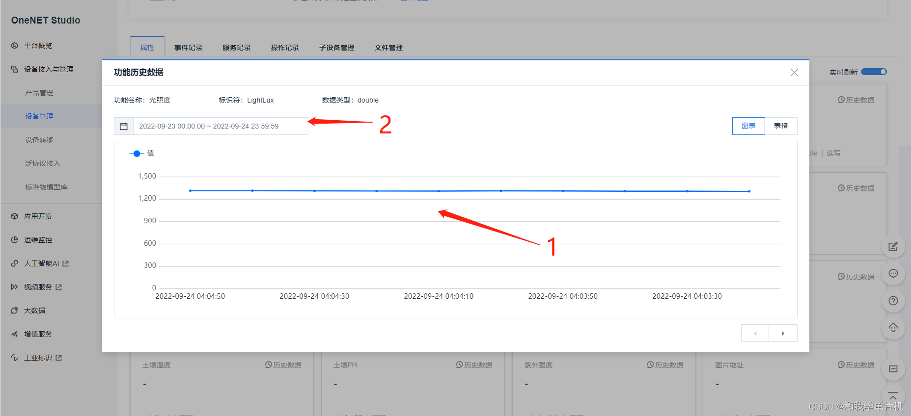 图1的2位置是OneNET Studio 平台上显示的数据,说明我已经可以和云端进行互动数据了。