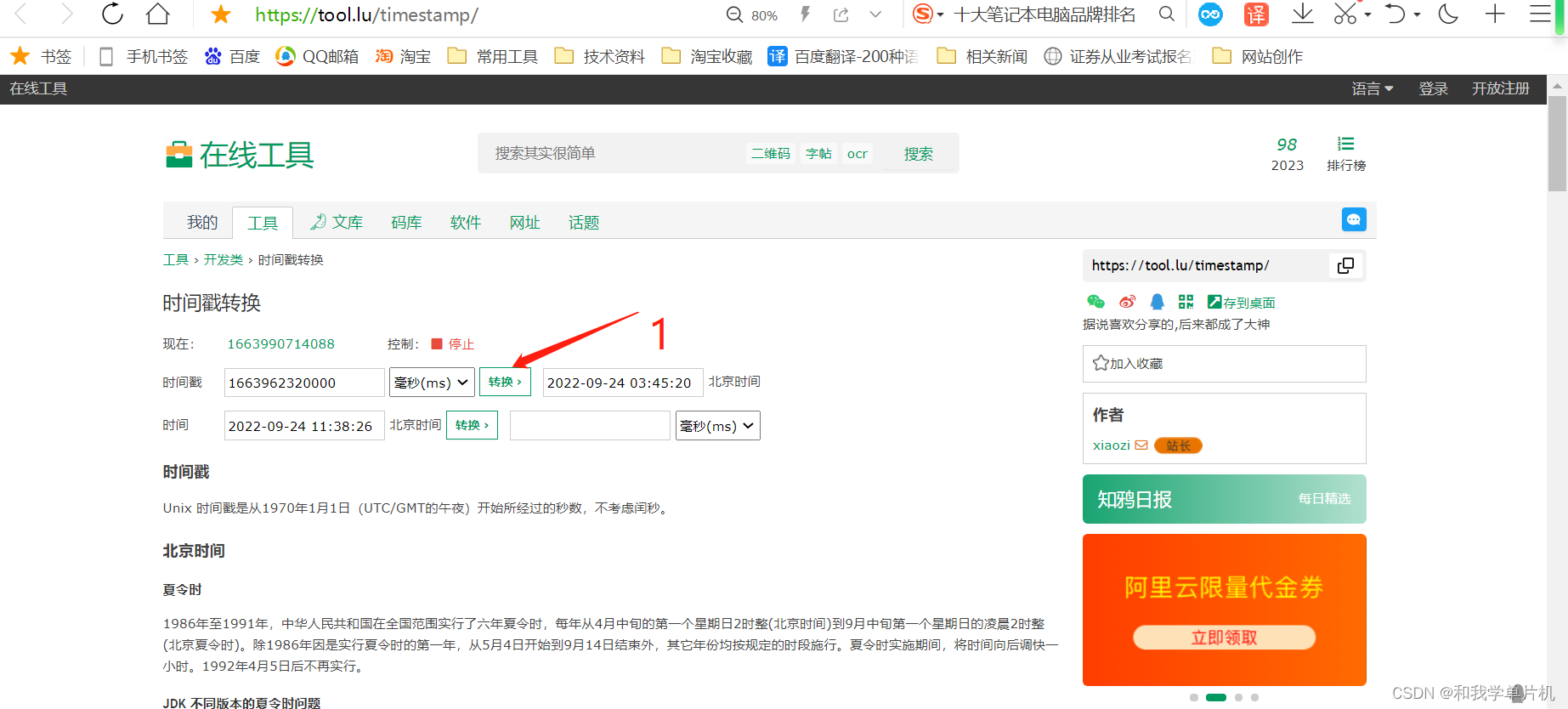 大家可以通过这个函数转换出来的时间戳值,放到在线工具进行反推验证,比如我得到的一个时间戳的值是1663962320000 单位是毫秒,如图13的1位置可以看到转换出来的北京时间是符合要求的(要注意,这个随数据一起发送的时间不能超过你生成密码用的时间)。