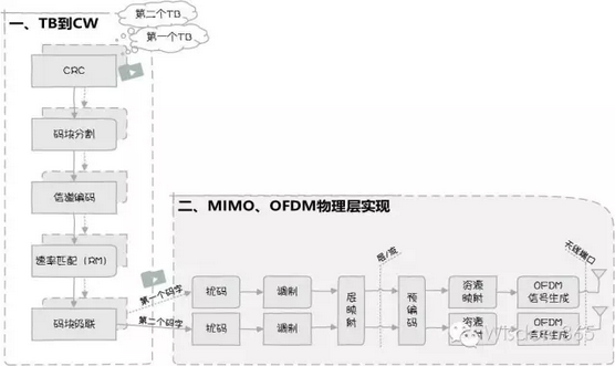 来吧,和小编一起继续物理层之战。第六步~第十一步依次是加扰、调制、层映射、预编码、资源映射、OFDM符号生成,其中第八步层映射和第九步预编码实现MIMO,第十一步OFDM符号生成实现另一关键技术OFDM。
