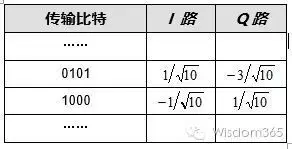 举个栗子,输入的一串数据为01011000,采用16QAM调制方式,这8个比特将被映射为两个调制符号,查36.211 Table 7.1.3-1可以得到映射后的I,Q取值,如下图。也就是说01011000这串数据通过16QAM调制器后,输出两路信号,其中I路取值XX和XX,Q路取值XX和XX(看下图吧,不知道怎么打根号。。。),对应两个调制符号。工程实现上当然无法输出一个复数,只需要把I路、Q路信号的取值保存成一张表,后续处理直接从表中取数就OK。