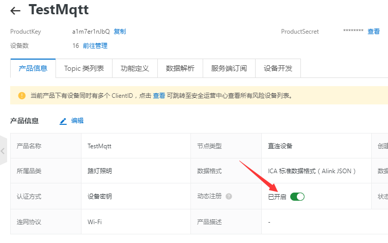 需要咱先在网页上注册上设备,然后把ProductKey、ProductSecret、DeviceName
