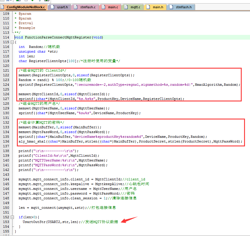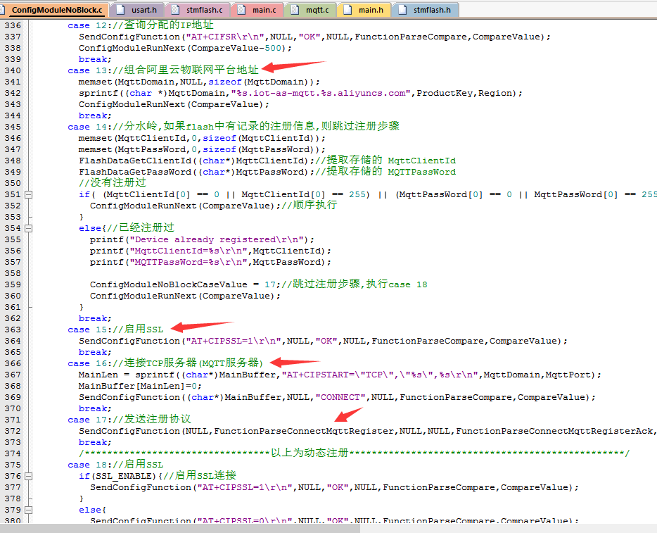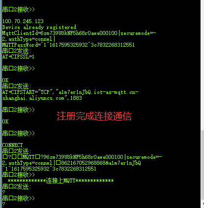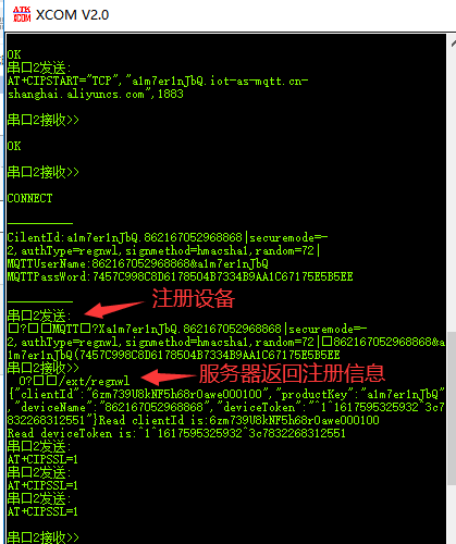2.打开SSL,连接阿里云的MQTT服务器,发送注册协议