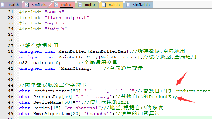 不过每个设备程序里面的需要写上产品的ProductKey 和 ProductSecret 的值,这两个值是固定的.