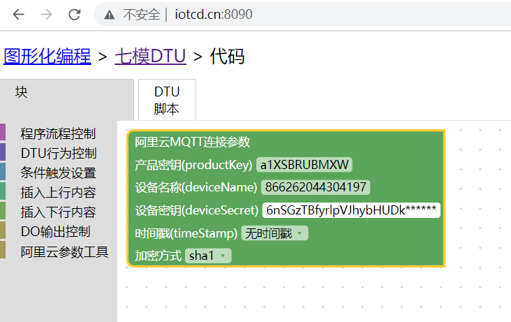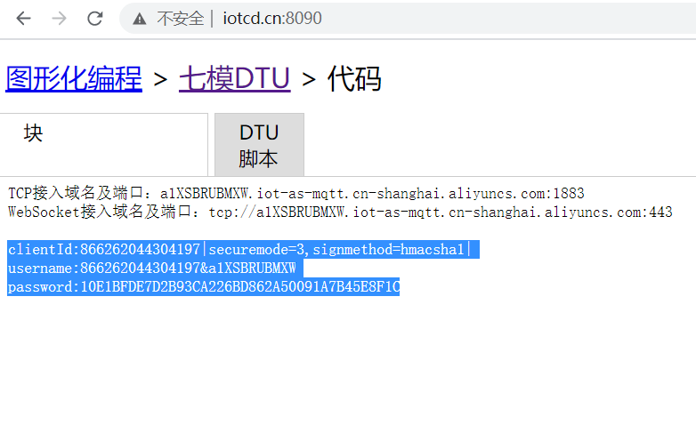 - ClientID:将生成的内容填入上位机所对应的位置:866262044304197|securemode=3,signmethod=hmacsha1|
