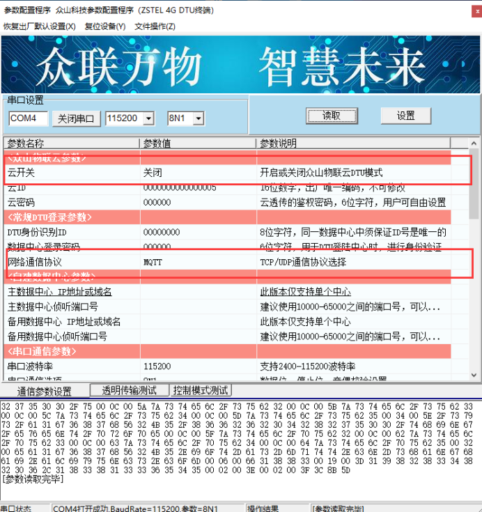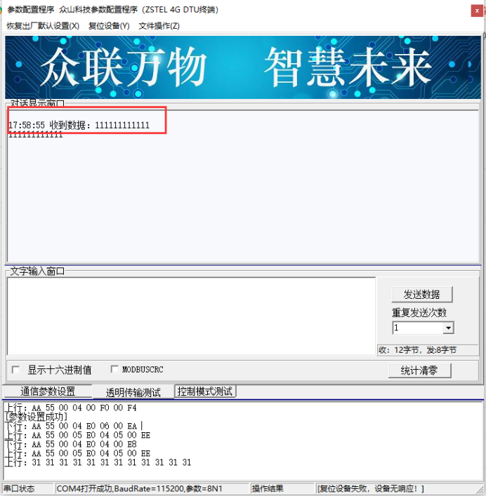 (设置完参数后,需要复位DTU设备,以便参数生效)
