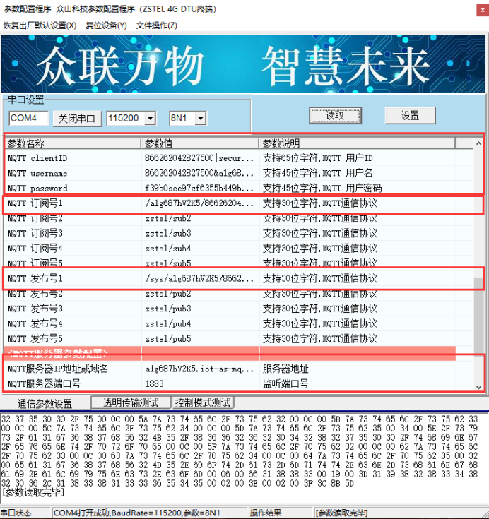 - Username:将生成的内容填入上位机所对应的位置:866262044304197&a1XSBRUBMXW