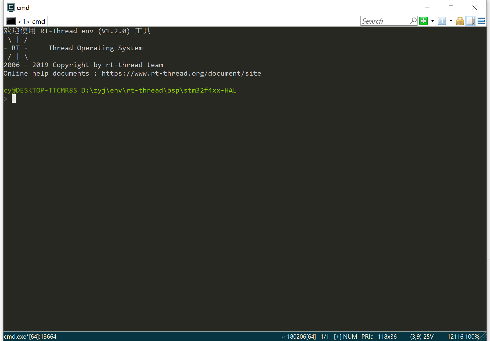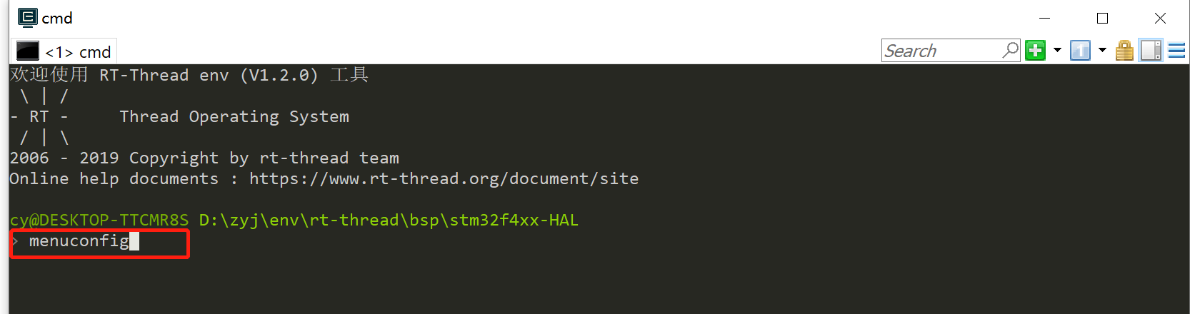 到这里配置Env就成功了,接下来对我们的bsp文件进行配置。如果还有不清楚的可以入rt-thread官网的文档中心查看详细的操作流程,文档中心链接:https://www.rt-thread.org/document/site/programming-manual/env/env/