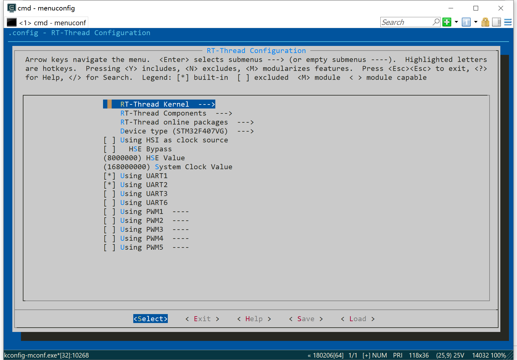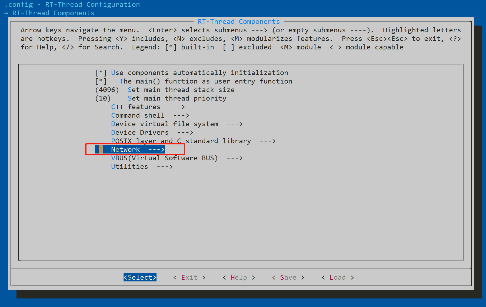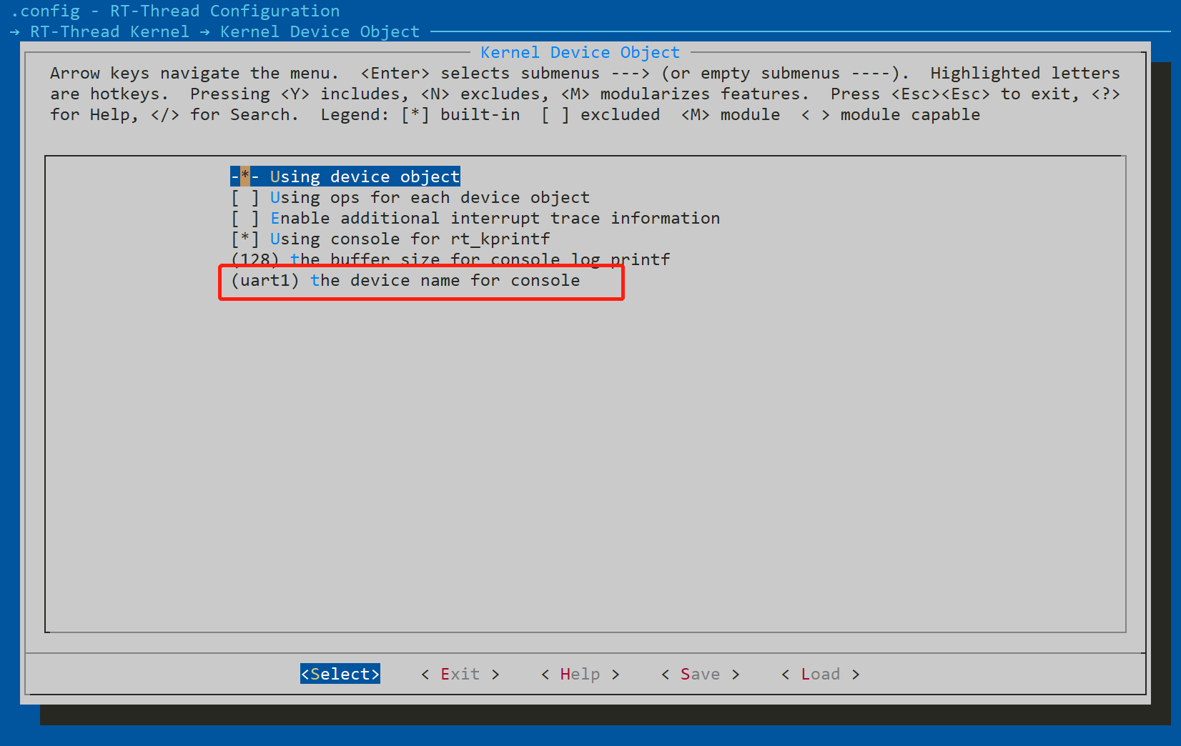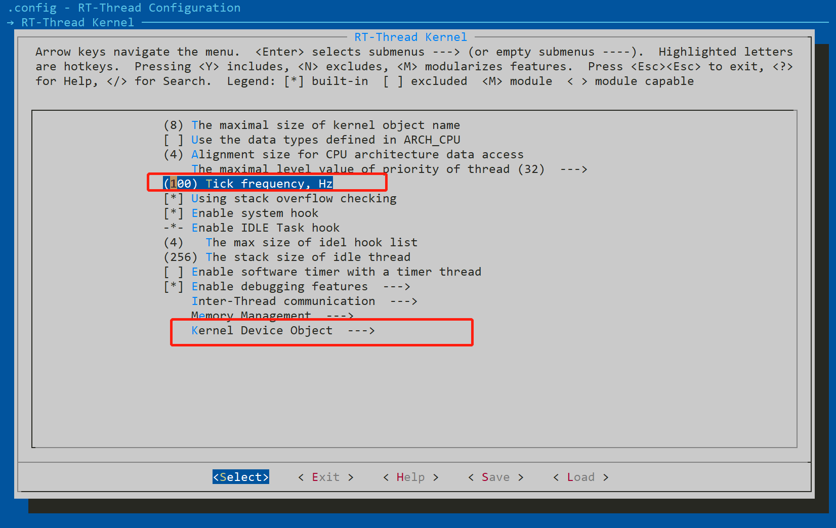 返回到这里,选中RT-Thread kernel并进入到其子菜单