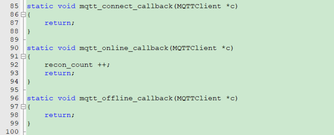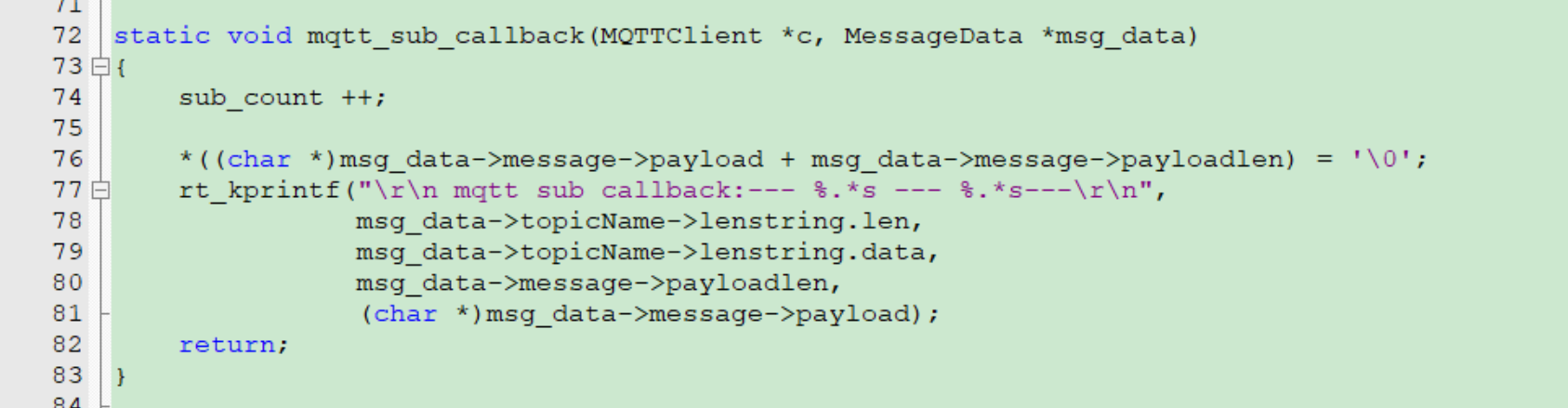 入下图所示,这个函数是用来接收云平台发来的消息的回调函数,我们可以在这个函数里处理云平台的消息