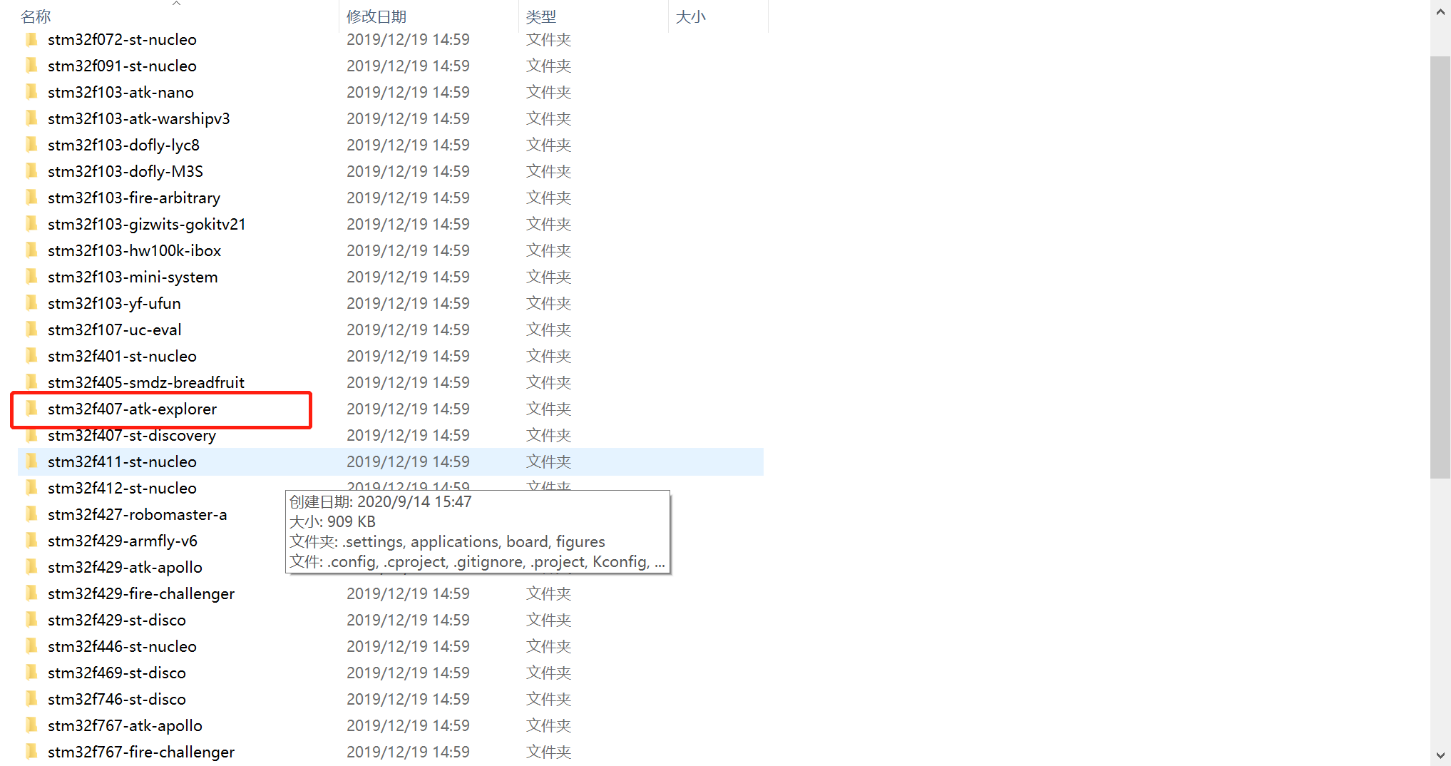 在这个stm32文件夹里有很多关于正点原子的开发板配套的资料,其实不管是什么开发板,最后我们选择好对应的MCU型号,配置好连接的GPIO管脚就能实现我们想要的功能。