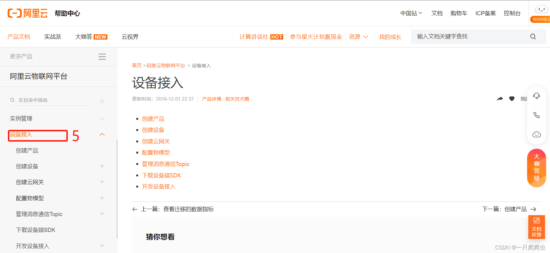 设备接入的文档都在这里,具体链接:设备接入 (aliyun.com)
