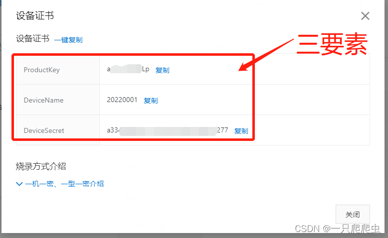 具体操作步骤见:单个创建设备 (aliyun.com)