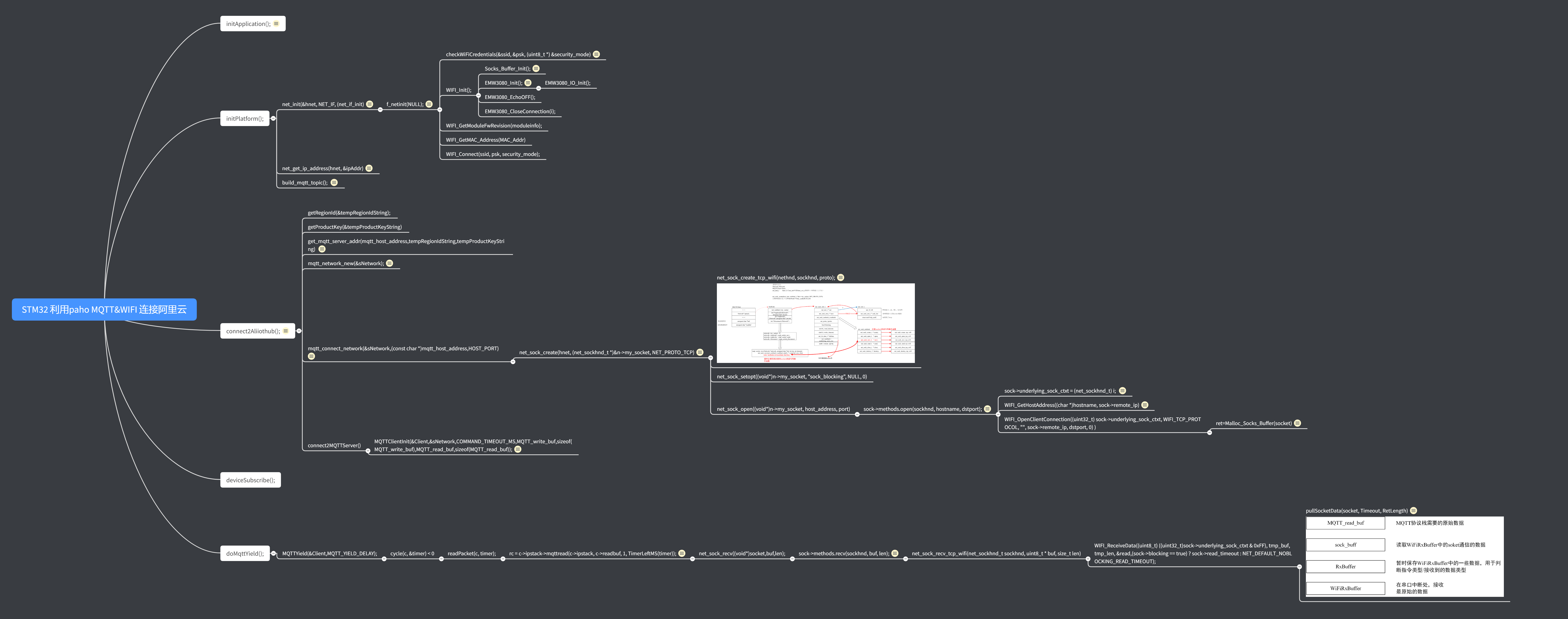 该例程中STM32中要实现MQTT收发数据,函数的调用过程见下图。