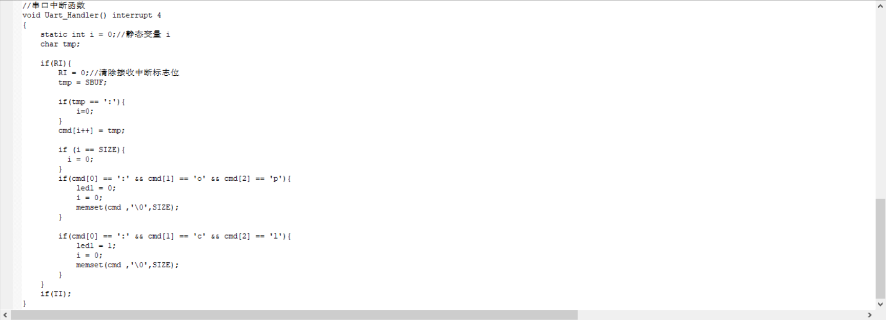 发送":open" led1灯点亮