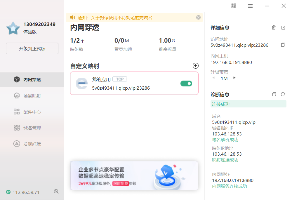 然后去花生壳官网下载软件用来进行内网穿透,下载成功后打开软件,新建一个自定义映射