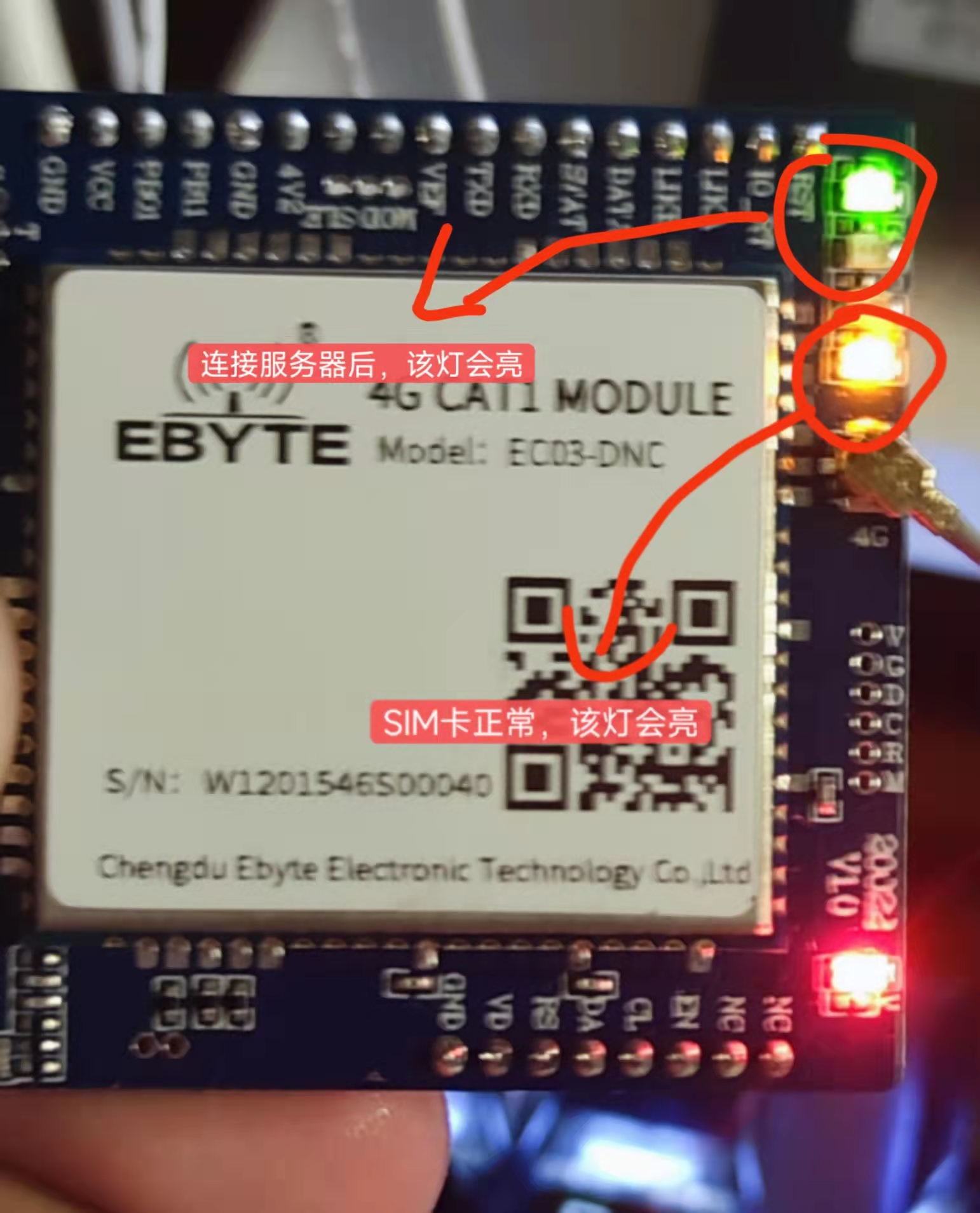 通电后模块右下角会亮起红灯,并且右上角四颗lcd灯会亮起,表示正在初始化