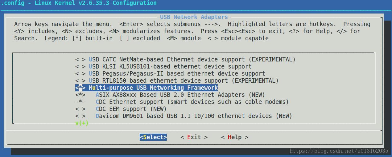 [*] Device Drivers → [*]Network device support → [*]usb Network Adapters →