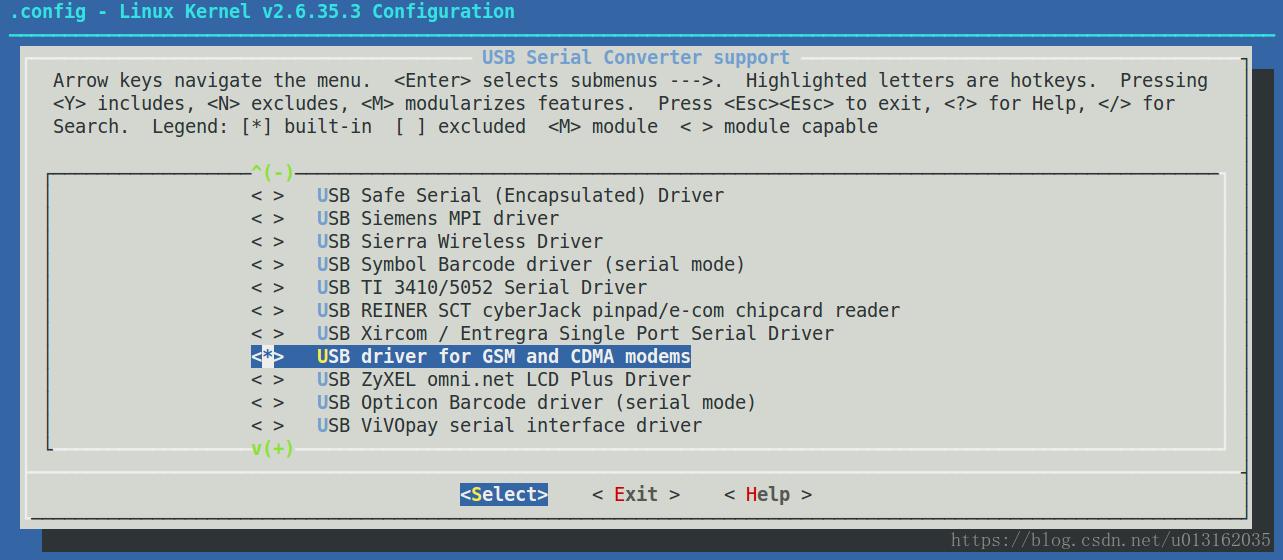 第二步:添加USB 串口 GSM 和 CDMA 驱动选项。